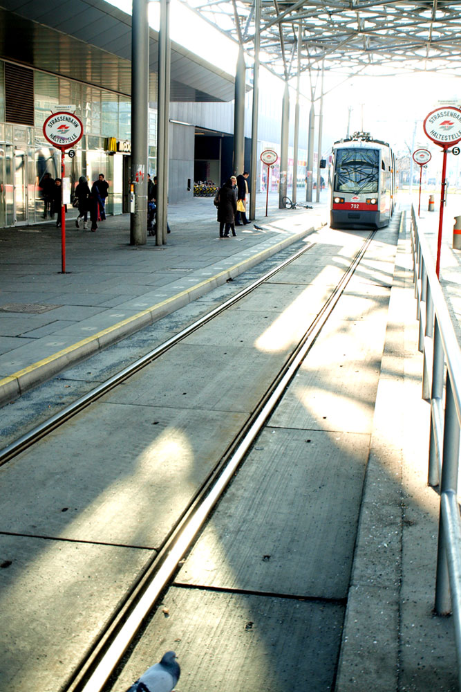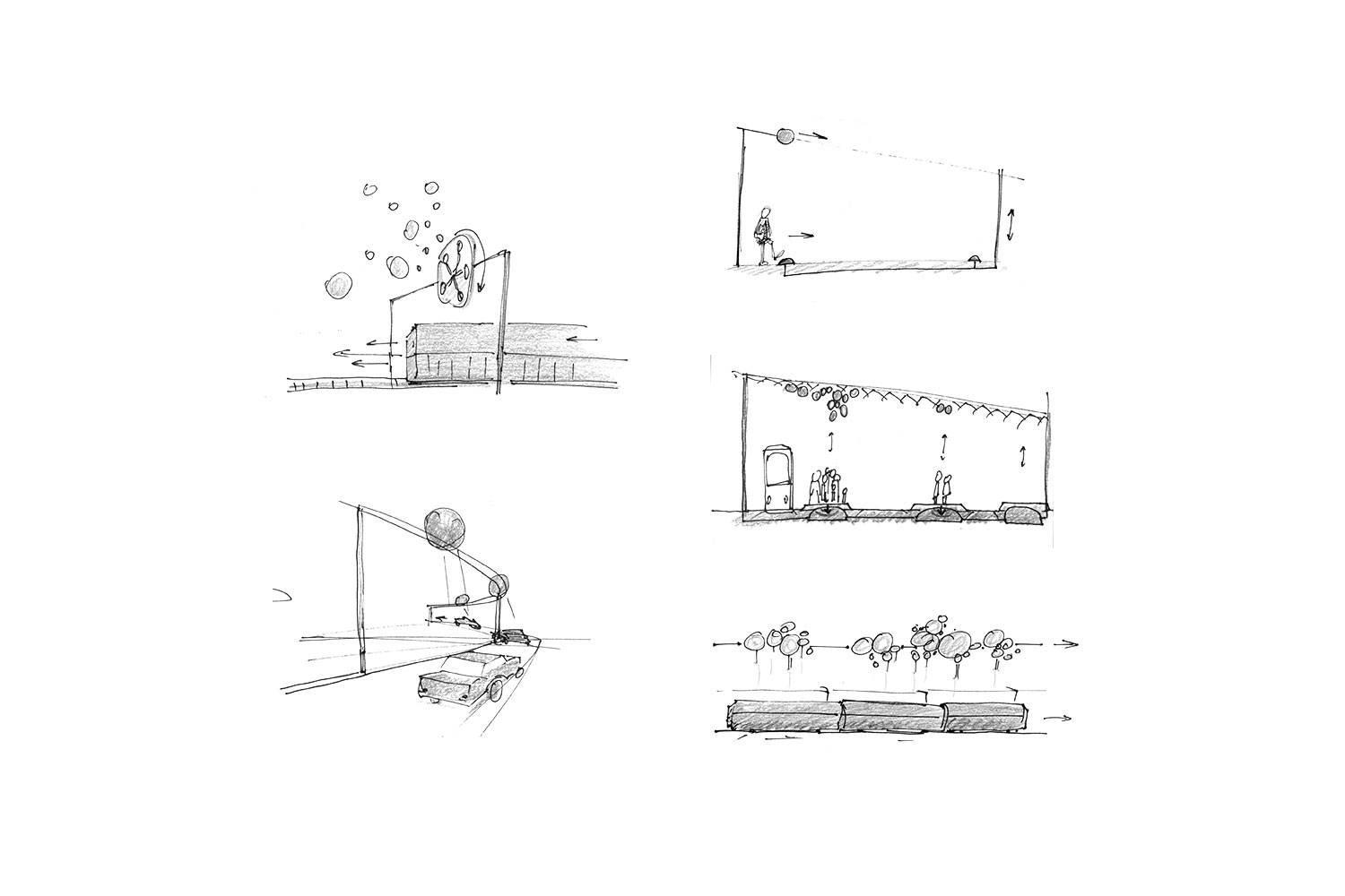 The project “Space in Motion” was developed for Praterstern, a square in Vienna. It is an important place where public transport (train, bus, subway and tram) meets individual transport (cars, bikes and pedestrians). All day long everybody and everything is moving at this transition space. The only people which see the “Spectacle” of movement are the people that stand still. Inspired by the sitting, standing, waiting homeless people at the square the idea was born to make the transition movement visible. Different installations should translate the invisible movement into a moving spectacle to tell the story of the space in motion.