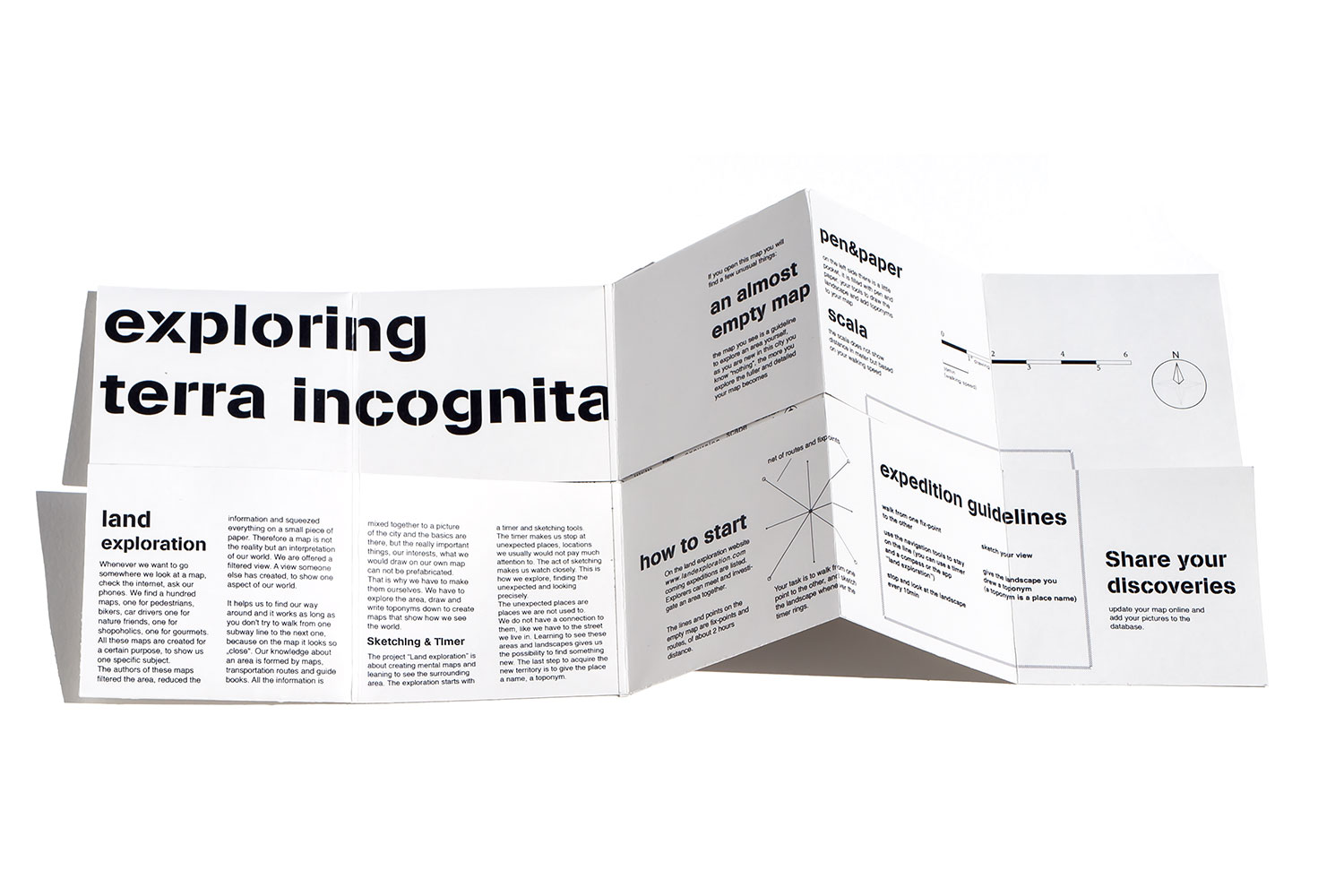 “Land Exploration” is the translation of a personal experience in “Appropriation of Landscape” to a land exploration tool. The developed map is blank, in the process of exploration it will be filled with landscape names. These names are a personal expression of the perception of a landscape scenery. Different landscape explorers are connected with each other via an online platform, where experiences can be shared and a common map of landscapes is created. The slowly growing map is not a traditional map, but formed by words, which describe landscape sceneries.