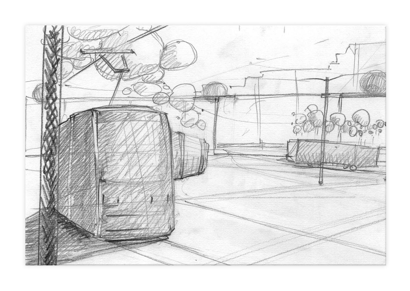"Common Secrets" deals with non-places*, in particular with the intersections of public transport systems. Negative aspects like solitude, similarity, latency, anonymity and the lack of relationships are given a new interpretation. Solitude and similarity offer privacy. Latency can be seen as a break, a possibility to rest. Anonymity frees a person from role models and social restraints. The lack of true relationships is a chance to put the focus on oneself. Short texts, written on the tram platform, were used to transport this new interpretation. Each text tells a story of a person. He/she is leaving a role, for example the role of a student, who is about to enter a new role, the bartender.