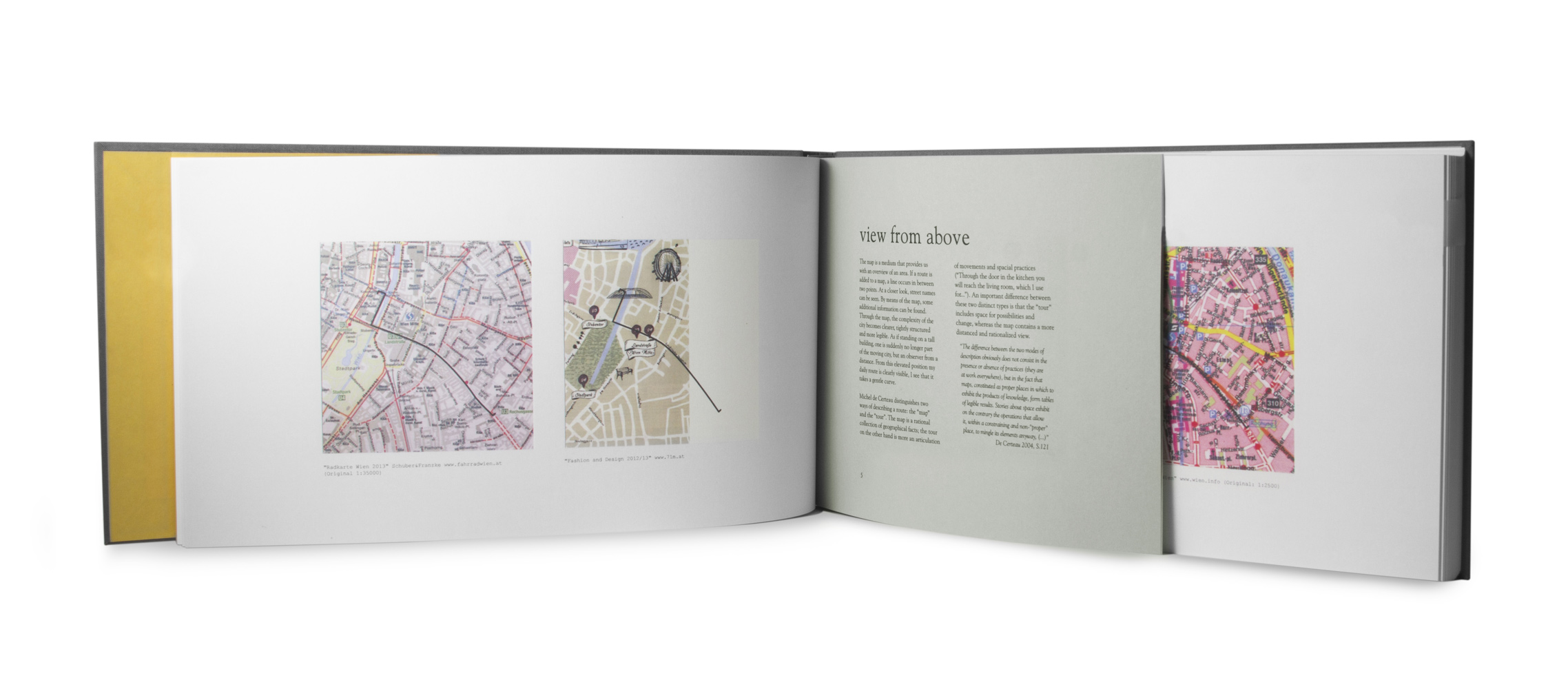 The diploma project “special, spacial collection“ focuses on everyday spaces and personal routes through public, transitional spaces between two destination points. The objective of this project is to approach transition spaces in a personal manner, to explore what a person can find along an everyday route and how this influences space and person. A book combines executed artistic studies and theoretical research, to communicate the results of this study.